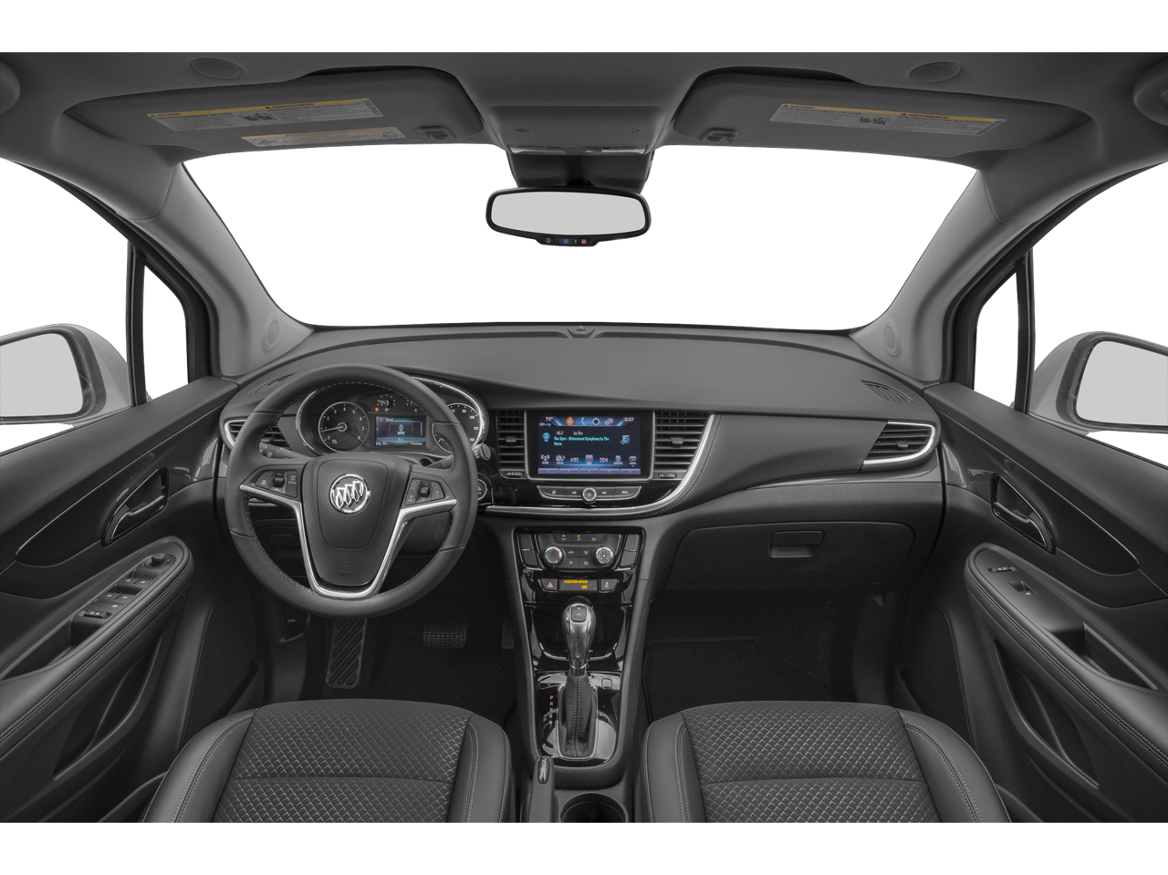 2-Way Manual Front Passenger Seat Adjuster, 3.53 Final Drive Axle Ratio, 4-Wheel Disc Brakes, 6 Speakers, 6-Speaker Audio System, 6-Way Power Driver Seat Adjuster, ABS brakes, Air Conditioning, Alloy wheels, AM/FM radio: SiriusXM, Apple CarPlay/Android Auto, Brake assist, Bumpers: body-color, Cloth w/Leatherette Seat Trim, Compass, Delay-off headlights, Driver door bin, Driver vanity mirror, Driver's Seat Mounted Armrest, Dual front impact airbags, Dual front side impact airbags, Electronic Stability Control, Emergency communication system: OnStar and Buick connected services capable, Exterior Parking Camera Rear, Front anti-roll bar, Front Bucket Seats, Front reading lights, Front wheel independent suspension, Fully automatic headlights, Heated door mirrors, Illuminated entry, Knee airbag, Low tire pressure warning, Occupant sensing airbag, Outside temperature display, Overhead airbag, Panic alarm, Passenger door bin, Passenger vanity mirror, Power door mirrors, Power driver seat, Power steering, Power windows, Preferred Equipment Group 1SB, Radio data system, Radio: Buick Infotainment System AM/FM Stereo, Rear seat center armrest, Rear side impact airbag, Rear window defroster, Rear window wiper, Remote keyless entry, Remote Vehicle Starter System, Ride & Handling Suspension, Roof rack: rails only, Security system, SiriusXM Radio, Speed control, Speed-sensing steering, Split folding rear seat, Spoiler, Steering wheel mounted audio controls, Tachometer, Telescoping steering wheel, Tilt steering wheel, Traction control, Trip computer, Turn signal indicator mirrors, Variably intermittent wipers, Wheels: 18 Machined-Face Alloy.