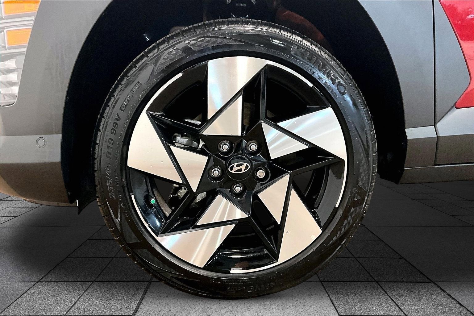 4-Wheel Disc Brakes, 8 Speakers, ABS brakes, Air Conditioning, Alloy wheels, AM/FM radio: SiriusXM, Apple CarPlay & Android Auto, Auto High-beam Headlights, Auto-dimming Rear-View mirror, Automatic temperature control, Brake assist, Bumpers: body-color, Cargo Net, Cargo Tray, Carpeted Floor Mats, Column-Mounted Shift-By-Wire, Cross Rails, Delay-off headlights, Driver door bin, Driver vanity mirror, Dual front impact airbags, Dual front side impact airbags, Electronic Stability Control, Emergency communication system: Bluelink+, Four wheel independent suspension, Front anti-roll bar, Front Bucket Seats, Front Center Armrest, Front dual zone A/C, Front reading lights, Fully automatic headlights, Garage door transmitter: HomeLink, H-Tex Leatherette Seat Trim, Heated & Ventilated Front Bucket Seats, Heated door mirrors, Heated front seats, Heated steering wheel, Illuminated entry, Leather steering wheel, Low tire pressure warning, Navigation System, Occupant sensing airbag, Option Group 01, Outside temperature display, Overhead airbag, Panic alarm, Passenger door bin, Passenger vanity mirror, Power door mirrors, Power driver seat, Power Liftgate, Power moonroof, Power steering, Power windows, Radio: AM/FM/HD Radio/SiriusXM w/Navigation, Rear anti-roll bar, Rear seat center armrest, Rear window defroster, Rear window wiper, Remote keyless entry, Security system, Speed control, Speed-sensing steering, Split folding rear seat, Spoiler, Steering wheel mounted audio controls, Tachometer, Telescoping steering wheel, Tilt steering wheel, Traction control, Trip computer, Turn signal indicator mirrors, Variably intermittent wipers, Ventilated front seats, Wheel Locks, Wheels: 19 x 7.5J Glossy Black Alloy.