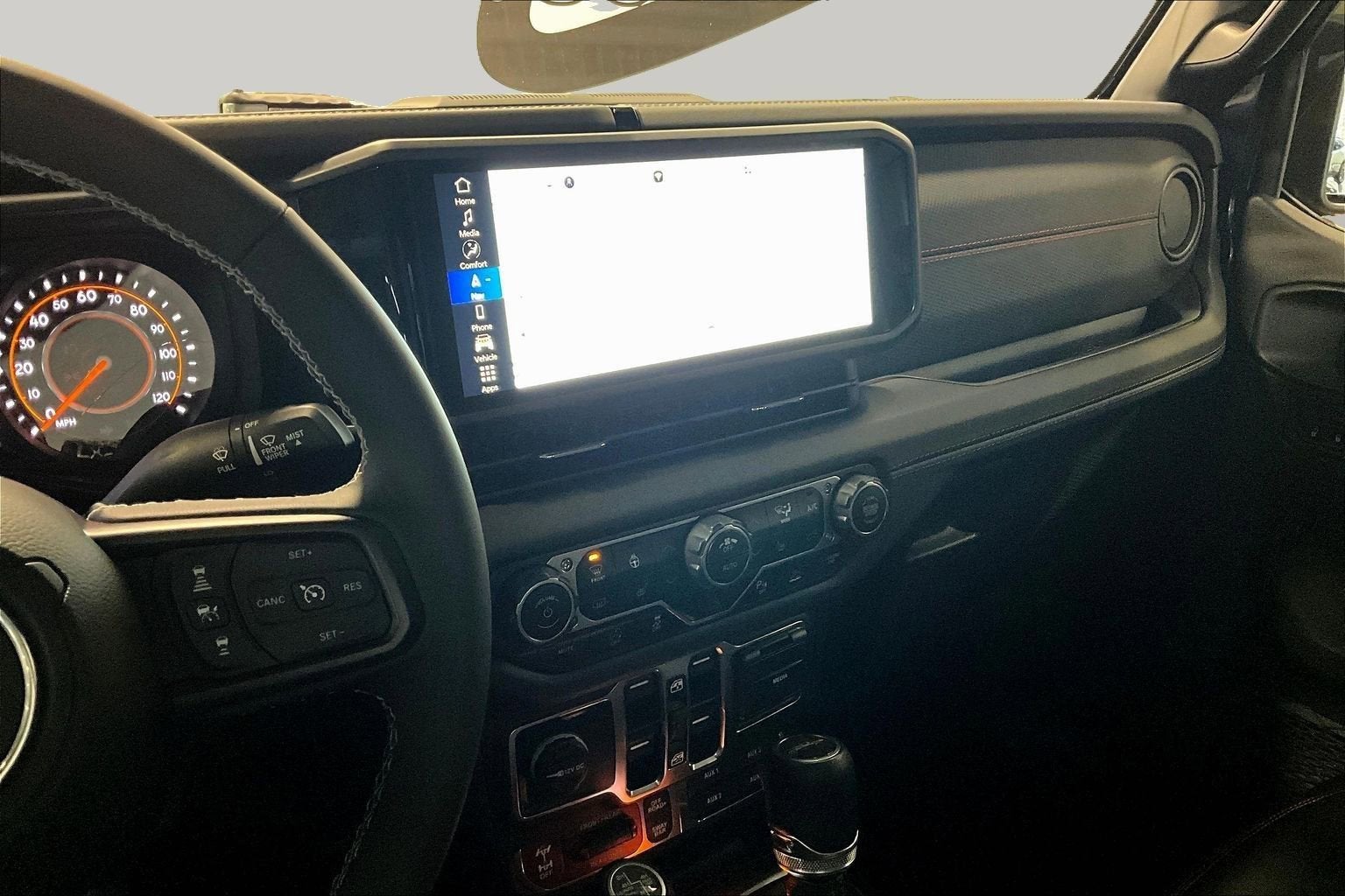 12.3 Touchscreen Display, 4-Wheel Disc Brakes, 4.10 Rear Axle Ratio, 4G LTE Wi-Fi Hot Spot, 8 Speakers, 97 MPH Vehicle Max Speed Calibration, ABS brakes, Air Conditioning, Alexa Built-In, Alloy wheels, Alpine Premium Audio System, AM/FM radio: SiriusXM, Apple CarPlay, Apple CarPlay/Android Auto, Auto High Beam Headlamp Control, Auto-Dimming Rear-View Mirror, Automatic temperature control, Blind Spot & Cross Path Detection, Bluetooth® Wireless Speaker, Body Color 3-Piece Hard Top, Body Color Rubicon Highline Flare, Brake assist, Cloth Low-Back Bucket Seats, Compass, Connected Travel & Traffic Services, Connectivity - US/Canada, Delay-off headlights, Driver door bin, Driver vanity mirror, Dual front impact airbags, Dual front side impact airbags, Electronic Stability Control, Emergency communication system: Jeep Connect, Freedom Panel Storage Bag, Front anti-roll bar, Front Bucket Seats, Front Center Armrest w/Storage, Front dual zone A/C, Front fog lights, Front License Plate Bracket, Front reading lights, Full Length Floor Console Premium Armrest, Fully automatic headlights, Google Android Auto, GPS Navigation, Heated door mirrors, Heated Front Seats, Heated Steering Wheel, Illuminated entry, Integrated Off-Road Camera, Integrated roll-over protection, Integrated Voice Command w/Bluetooth®, Leather Wrapped Park Brake Handle, Leather Wrapped Shift Knob, Low tire pressure warning, MOPAR All-Weather Slush Mats, MOPAR Hard Tri-Fold Tonneau Cover, MOPAR Hardtop Headliner, MOPAR Spray In Bedliner, Occupant sensing airbag, Outside temperature display, Overhead airbag, Panic alarm, ParkSense Rear Park Assist System, Passenger door bin, Passenger vanity mirror, Performance Suspension, Power 4-Way Driver Lumbar Adjust, Power 4-Way Passenger Lumbar Adjust, Power Adjust 8-Way Driver Seat, Power Adjust 8-Way Front Passenger Seat, Power Adjust Nappa Leather Seats, Power door mirrors, Power steering, Power windows, Premium Door Trim Panel, Quick Order Package 24Y Rubicon X, Radio data system, Radio: Uconnect 5 Nav w/12.3 Display, Radio: Uconnect 5 w/12.3 Display, Rear anti-roll bar, Rear Armrest w/Cupholder Seat, Rear reading lights, Rear Sliding Window, Rear Window Defroster, Remote keyless entry, Security system, SiriusXM Radio Service, SiriusXM w/360L, Speed control, Split folding rear seat, Steel Front Bumper, Steering wheel mounted audio controls, Tachometer, Telescoping steering wheel, Tilt steering wheel, Traction control, Trip computer, Universal Garage Door Opener, USB Host Flip, Variably intermittent wipers, Voltmeter, Wheels: 17 x 7.5 Machined/Painted Black.