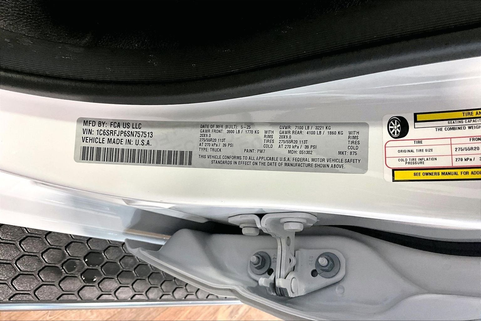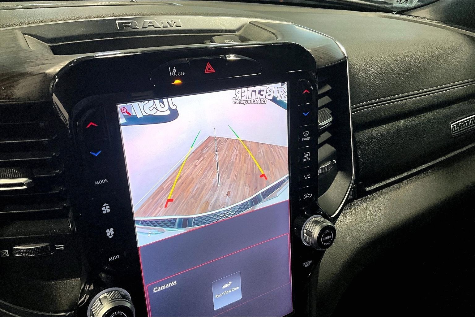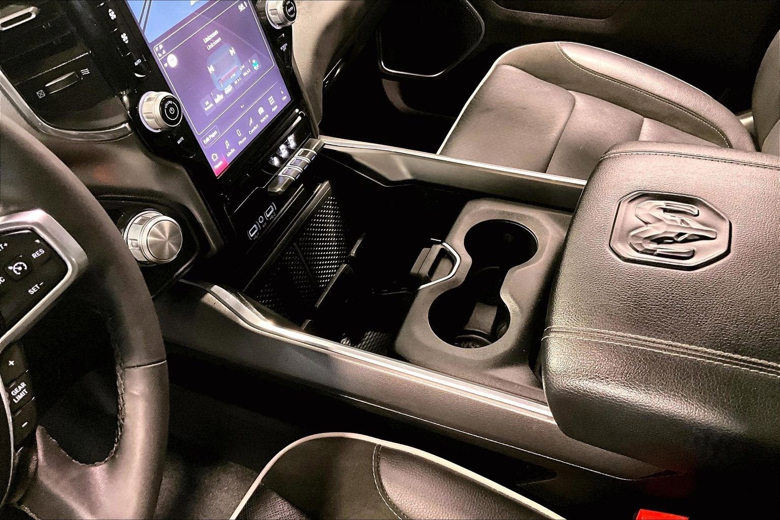 #1 Seat Foam Cushion, 10 Speakers, 3 Rear Seat Head Restraints, 3.55 Rear Axle Ratio, 4 Way Front Headrests, 4-Wheel Disc Brakes, 4G LTE Wi-Fi Hot Spot, ABS brakes, Accent Color Premium Power Mirrors, Air Conditioning, Alloy wheels, AM/FM radio: SiriusXM with 360L, Apple CarPlay, Apple CarPlay/Android Auto, Audio memory, Auto High-beam Headlights, Auto Power-Folding Mirrors, Auto-dimming door mirrors, Auto-Dimming Exterior Driver Mirror, Auto-dimming Rear-View mirror, Automatic temperature control, Black Interior Accents, Black Painted Exterior Mirrors Caps, Body Color Front Bumper, Body Color Rear Bumper w/Step Pads, Brake assist, Bridgestone Brand Tires, Bucket Seats, Bumpers: chrome, Center Console Parts Module, Chrome Exterior Mirrors, Compass, Connected Travel & Traffic Services, Connectivity - US/Canada, Convex Wide-Angle Exterior Mirror Insert, Delay-off headlights, Driver door bin, Driver Seat Memory, Driver vanity mirror, Dual front impact airbags, Dual front side impact airbags, Electronic Stability Control, Exterior Mirrors Courtesy Lamps, Exterior Mirrors w/Heating Element, Exterior Mirrors w/Memory, Exterior Mirrors w/Supplemental Signals, Front anti-roll bar, Front Center Armrest w/Storage, Front dual zone A/C, Front fog lights, Front License Plate Bracket, Front reading lights, Front Seat Back Map Pockets, Front wheel independent suspension, Full Length Upgraded Floor Console, Fully automatic headlights, Garage door transmitter, Google Android Auto, GPS Antenna Input, GPS Navigation, Grille Surround 3 Body Color Tex 2 Black, HD Radio, Heated door mirrors, Heated Front Seats, Heated front seats, Heated rear seats, Heated Second Row Seats, Heated Steering Wheel, Heated steering wheel, Illuminated entry, Integrated Voice Command w/Bluetooth®, Laramie Level 1 Equipment Group, Leather steering wheel, Leather Trim 40/20/40 Bench Seat, Leather Trimmed Bucket Seats, Low tire pressure warning, Memory seat, Navigation System, Occupant sensing airbag, Outside temperature display, Overhead airbag, Overhead console, Panic alarm, ParkView Rear Back-Up Camera, Passenger door bin, Passenger vanity mirror, Power 2-Way Driver Lumbar Adjust, Power 2-Way Passenger Lumbar Adjust, Power Adjust 8-Way Driver Seat, Power Adjust 8-Way Front Passenger Seat, Power door mirrors, Power driver seat, Power passenger seat, Power steering, Power windows, Quick Order Package 21H Laramie, Radio data system, Radio: Uconnect 5 Nav w/12.0 Display, Rain Sensitive Windshield Wipers, RAM Grille Badge - Chrome, Rear 60/40 Folding Split Recline Seat, Rear anti-roll bar, Rear reading lights, Rear seat center armrest, Rear step bumper, Remote keyless entry, Remote Tailgate Release, Security system, SiriusXM w/360L, Speed control, Split folding rear seat, Sport Appearance Package, Sport Performance Hood, Steering wheel mounted audio controls, Tachometer, Telescoping steering wheel, Tilt steering wheel, Traction control, Tri-Fold Tonneau Cover, Trip computer, Turn signal indicator mirrors, USB Host Flip, Variably intermittent wipers, Ventilated Front Seats, Ventilated front seats, Voltmeter, Wheel to Wheel Side Steps, Wheels: 20 x 9 Premium Paint/Polish.